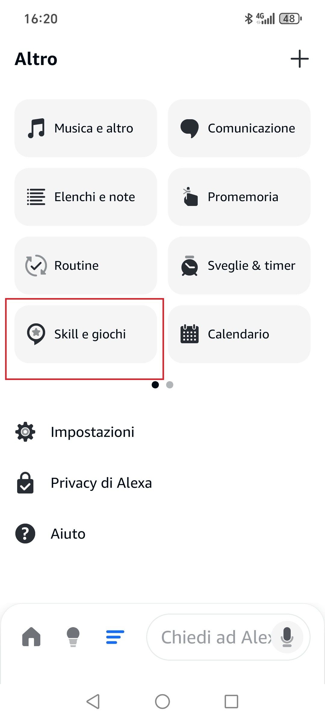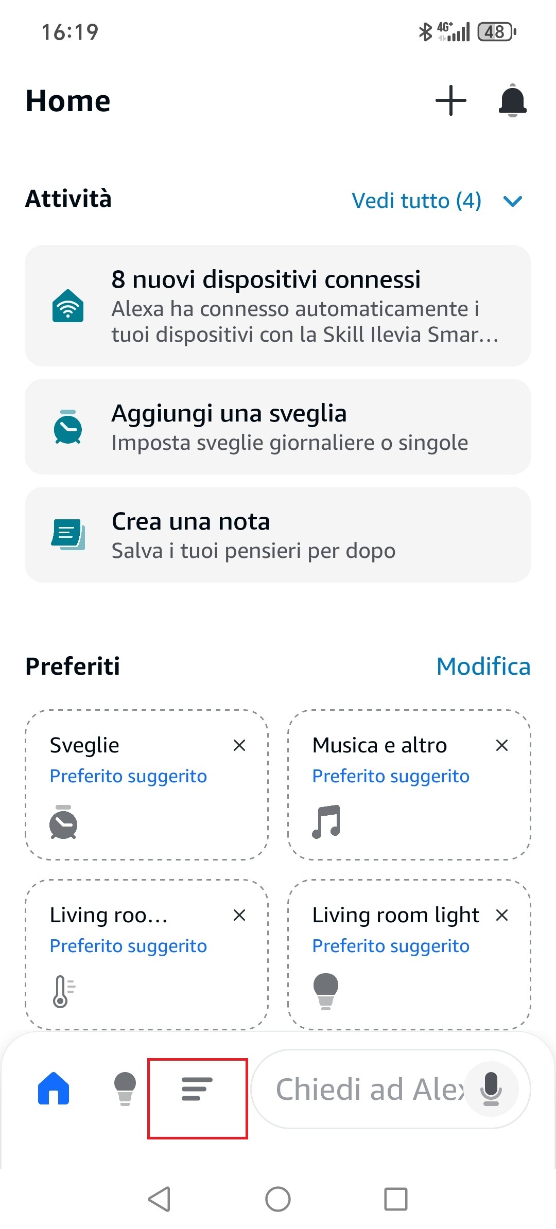 Abilitazione skill ilevia smart home all'interno dell'applicazione Amazon Alexa